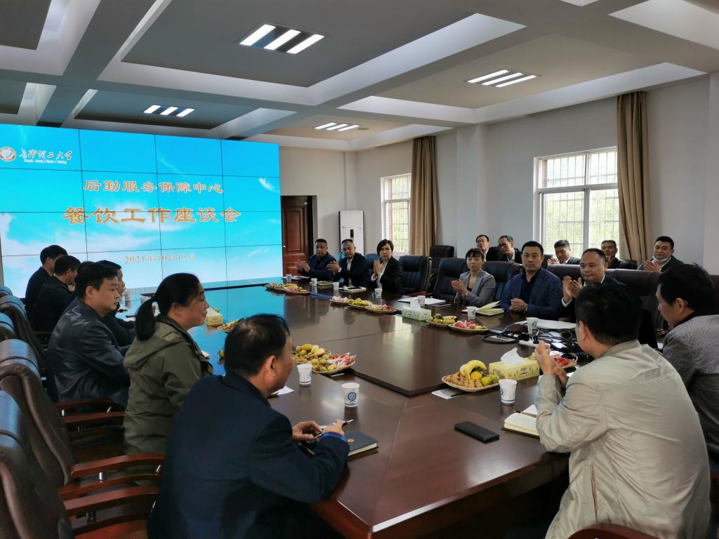 10月13日下午,后勤中心在节能平台会议室召开餐饮工作座谈会,中心主任孔蔚湘、副主任刘治国、餐饮服务部班子成员、各联营公司负责人及食堂项目经理参加会议,会议由餐饮服务部经理李波主持。