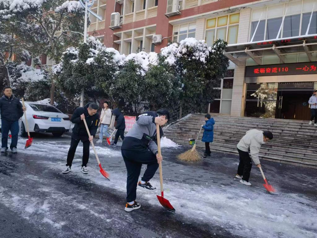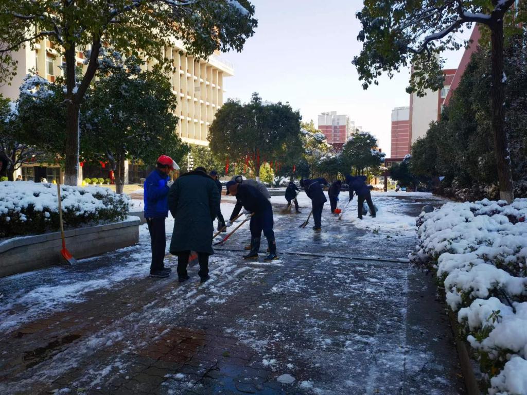 1月22日,长沙迎来今冬第一场大雪,积雪冰冻给师生出行带来不便。为确保师生出行安全,物业服务部全体出动,群策群力,开展铲雪除冰保畅通行动,全力保障师生雪天出行安全。