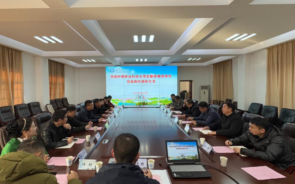1月16日上午,中南林业科技大学后勤保障部部长兼保卫部部长张双利一行来LETOU官网调研交流。后勤中心班子成员及餐饮、物业、水电及校医院部门负责人参加座谈交流。