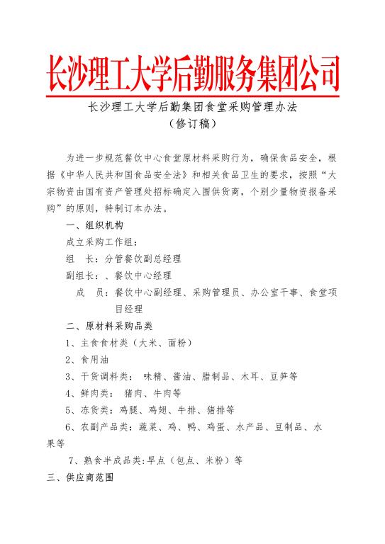 LETOU体育平台后勤集团食堂采购管理办法(修订稿)