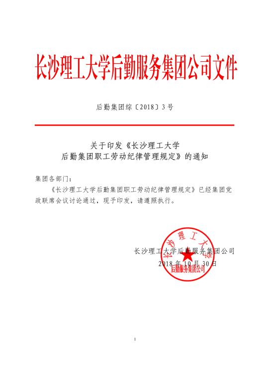 关于印发《LETOU体育平台后勤集团职工劳动纪律管理规定》的通知