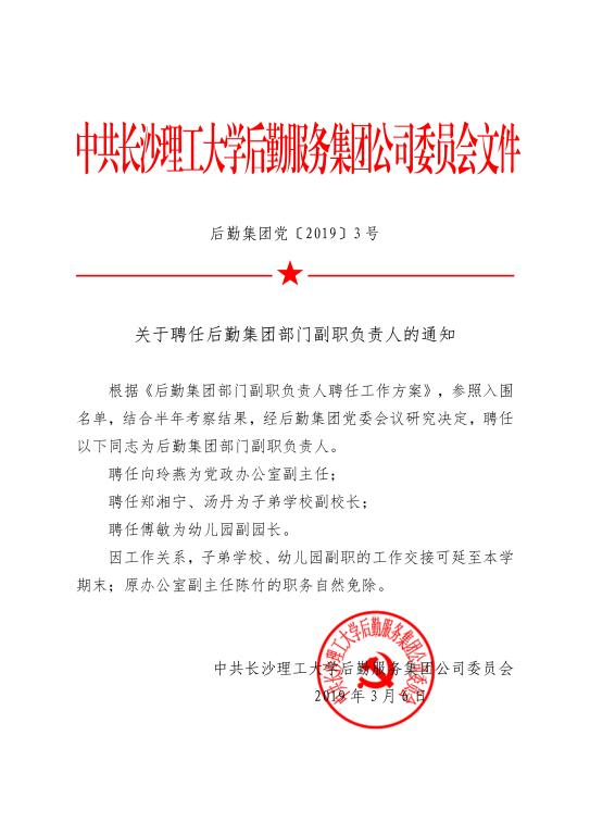 关于聘任后勤集团部门副职负责人的通知