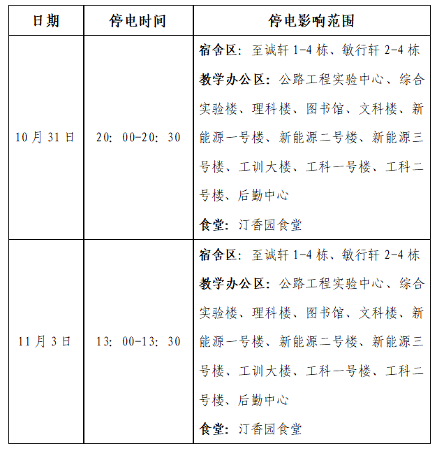 云塘校区停电通知