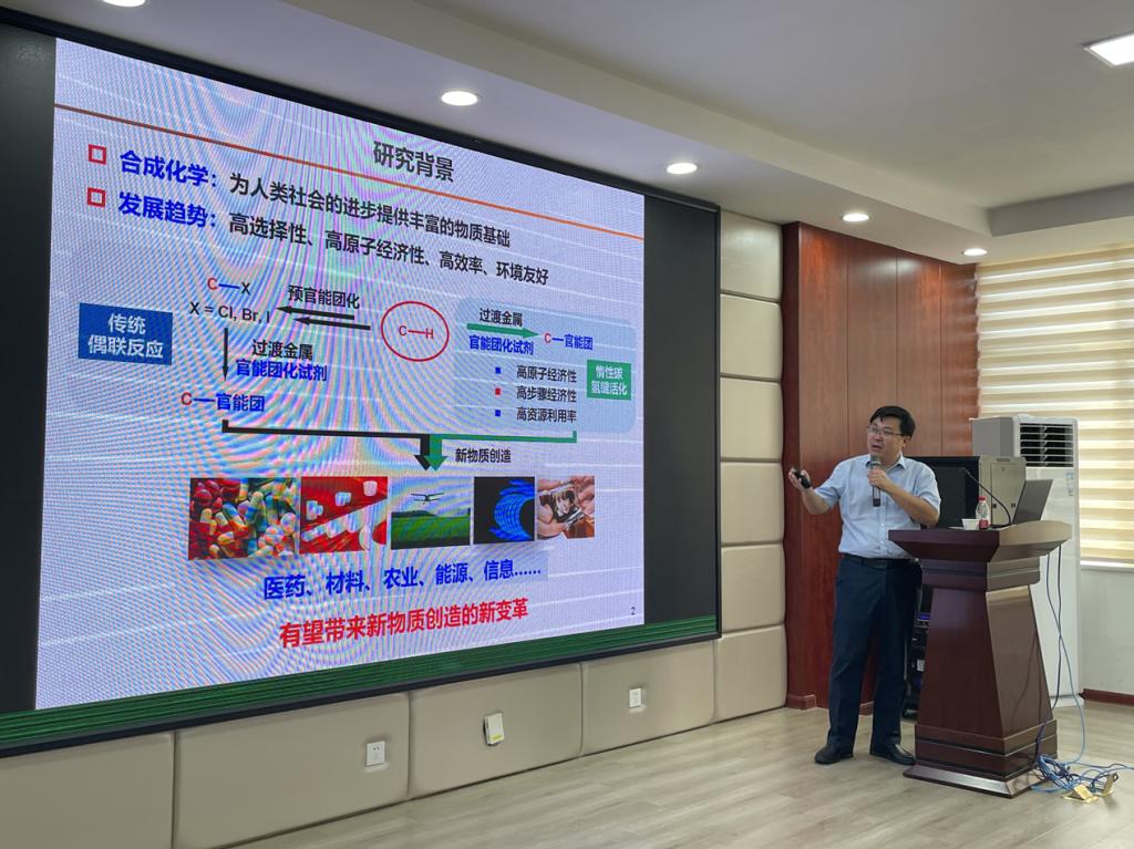 7月13日上午,应LETOU体育平台化学与食品工程学院邀请,国家杰青长江学者浙江大学史炳锋教授在云塘校区工三A320作了题为 “惰性碳氢键不对称催化转化”的学术报告,此次报告会为第九期研究生博力学术分论坛,由化学学院周俊特聘教授主持,化学化工相关学科师生百余人参加。
