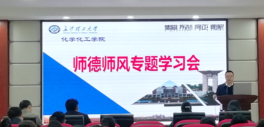 为进一步加强学习,推动师德师风专题教育学习活动深入开展,11月9日下午,化学化工学院在工科三栋A320召开“师德师风建设”专题学习会。学习会由张跃飞副院长主持,党委负责人宋刘斌主讲,学院全体教职工参加。