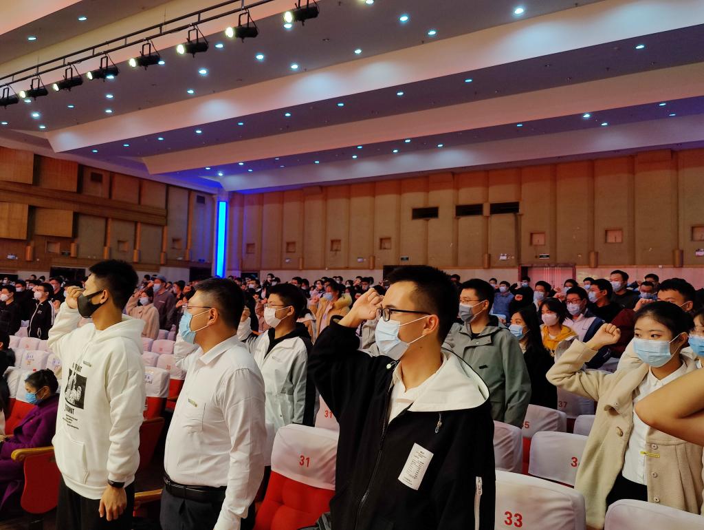 老生代表、学生会主席高昊倡议全体新同学戒骄戒躁,用心学习;善于思考,勤于总结;培养能力,敢于实践;厚植情怀,勇于担当;保持初心,不断奋斗。随后2021级研究生宋晓轩、2021级本科新生王楚尧、2021级专升本新生周江南等三名新生代表进行朗诵发言,深情号召全体新同学共同面对新征程、新挑战;并带领全体同学向新的学习生活郑重宣誓。