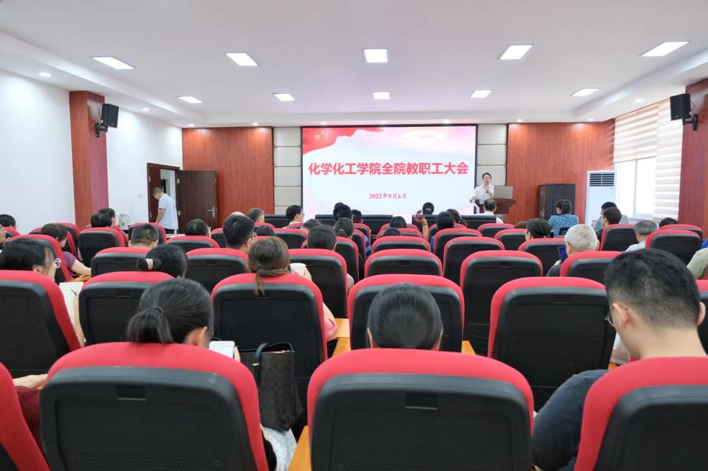 9月6日,化学化工学院在工科三号楼A320会议室召开新学期第一次全院大会,学院党政领导班子和全体教职工参加会议,会议由副院长张跃飞主持。