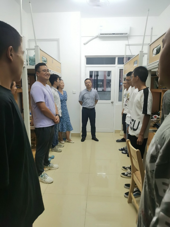 2022年9月19日,化学化工学院党委书记宋刘斌、党委副书记陶双、辅导员张航与各班级班主任来到敏行轩二栋,看望慰问我院学生,增强师生联系。