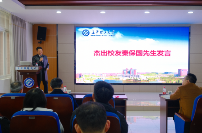 杰出校友秦保国董事长发言,秦董事长看到风华正茂的同学们,回忆起当年青春年华的自己。轻工造纸是一个广阔、大有作为的行业。希望同学们能够珍惜在母校的学习时光,树立远大理想,提高综合素质,不辜负党和国家、母校、父母的期望,同时要强化责任担当,练就过硬本领,心植家国情怀,心怀感恩,感恩时代、感恩老师、感恩父母,在人生的赛道上奋勇拼搏,奋力谱写青春的华美篇章。