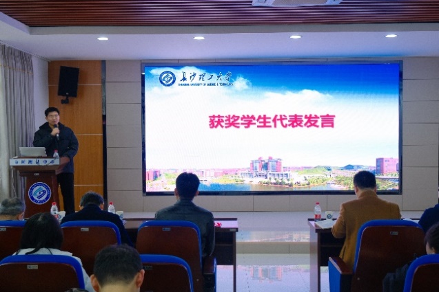 随后,副院长(主持工作)张跃飞宣读了化学化工学院文件并宣布获奖同学名单。秦保国董事长分别为奖助学金获奖同学颁发证书。轻化2001班黄炀昊同学作为获奖学生代表发表感言,表示一定会常怀感恩之心,努力学习,让自己能够成为一名优秀的轻化学子和中国新青年。