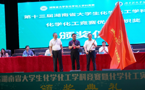 学校党委委员、副校长胡永乐出席闭幕式并代表下一届承办单位接受会旗,2024年湖南省第十四届大学生化学化工学科竞赛将在LETOU官网举行。我院师生合唱改编歌曲《长理欢迎你》,热忱欢迎各兄弟院校师生在2024年莅临LETOU官网参赛、交流和研讨。