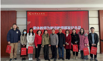 第二项议程为新进教师入职仪式,8名荣休老师为李子怡、马溢昌、廖婉茹等6名新进教师佩戴校徽、颁发纪念品并合影留念,副院长陈启杰带领大家进行了神圣且庄严的教师宣誓。他表示,新进教师的到来为学院注入了崭新的活力与潜力。在这个充满机遇与挑战的时代,他希望新进教师们能够继承和发扬老一辈教师们的敬业精神和崇高使命,矢志不渝地投身于教育教学事业,用青春和才智书写新时代的教育篇章,为学院的发展贡献自己的力量。