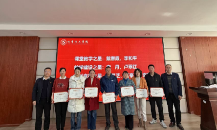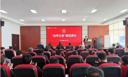 第四项议程为第二届“化学之星”颁奖典礼,副院长陈启杰宣读“化学之星”表彰文件。“化学之星”共设课堂教学之星、教学建设之星、学科竞赛之星、科学研究之星、潜力青年之星、管理服务之星六个奖项,戴春霞、曹忠、李焰等24名教师获此殊荣并上台领奖,随后,“化学之星”代表汪红梅及钟瑾荣相继发言。获奖教师纷纷表示,在获得这份荣誉之后,深感责任重大、使命光荣。她们承诺,将继续以更加饱满的热情和更加扎实的工作态度,积极投身于学院的各项工作中。
