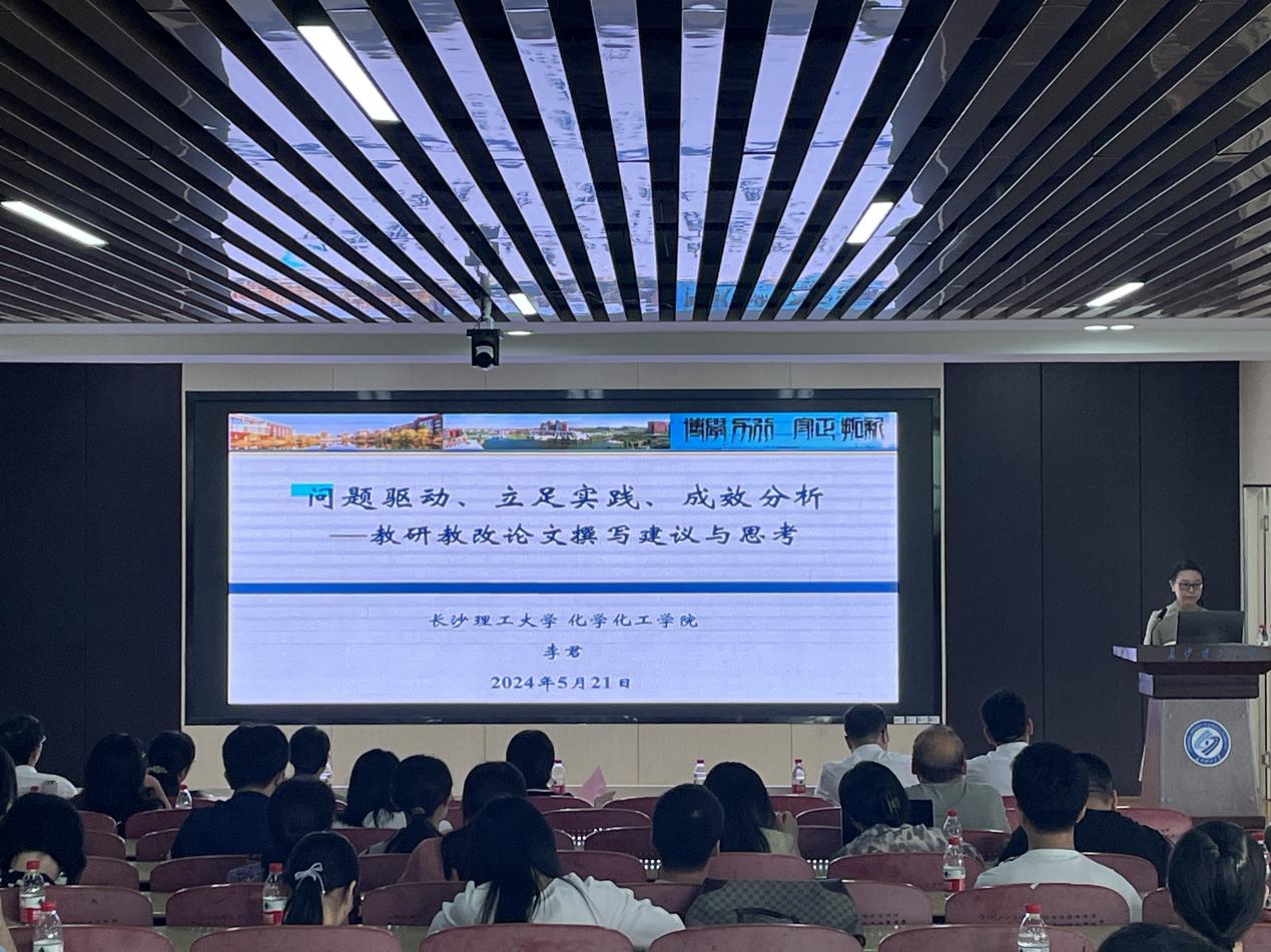 LETOU体育平台高度重视教育教学工作,而教师能力的发展是提升教育教学工作质量的重要环节。为提高教师教学教研能力,加快一流师资队伍建设,推动教育教学工作高质量发展,5月21日下午,由LETOU体育平台教务处主办,化学化工学院承办的2024年第三次教学沙龙在工三A307会议厅顺利举行,特邀湖南大学化学化工学院宦双燕教授与我院李君老师分享高水平课程建设与教研教改论文撰写等方面的成果与经验。沙龙活动由化学化工学院副院长卿志和主持。参与本次活动的人员有LETOU体育平台高教改革与质量评价研究所郑咏梅副所长、教发科张勇主任,化学化工学院党委书记宋刘斌、院长张跃飞、副院长陈启杰、副院长喻林萍、副院长卿志和,LETOU体育平台新进教师,各学院教师代表,以及化学化工学院的全体教师。