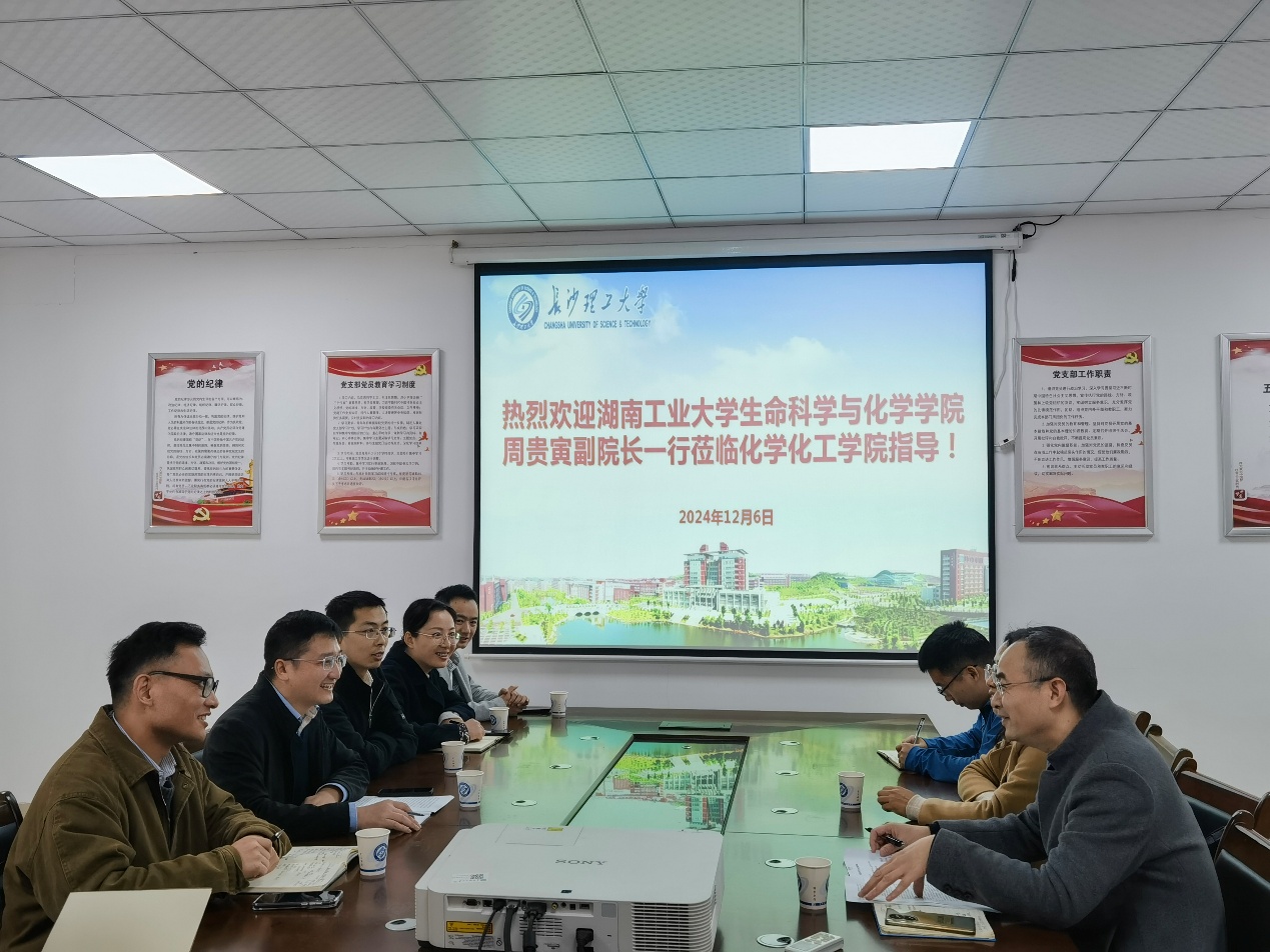 2024年12月6日上午,湖南工业大学生命科学与化学学院副院长周贵寅一行莅临LETOU体育平台化学化工学院进行调研和交流。此次访问旨在加强两院之间的合作,探讨产学研结合、就业指导以及人才培养的新路径。交流会议由化学化工学院副院长陈启杰主持,应化系主任童海霞、化工系主任戴益民、化学系主任李俊彬、化学系副主任罗文坤等教师代表参加了此次交流讨论会议。