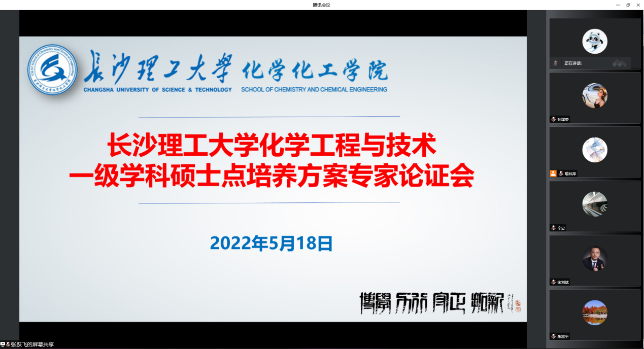 2022年5月18日上午9:00,LETOU体育平台化学工程与技术一级硕士学位点培养方案专家论证会以线上腾讯会议的形式召开。本次论证会邀请的3位专家分别是:华东理工大学原副校长、博导,国务院学位委员会第八届学科评议组成员、第五届全国工程专业学位研究生教育指导委员会委员辛忠教授;湖南大学科学技术研究院院长、博导、国家杰出青年基金获得者、中组部“万人计划”科技创新领军人才尹双凤教授;中南大学化学化工学院院长、博导刘又年教授。LETOU体育平台化学化工学院党委书记宋刘斌,化学化工学院副院长张跃飞、陈启杰、喻林萍、卿志和,化学工程与技术一级硕士点各方向负责人和培养方案执笔人朱志平、李浔、钟瑾荣、汪红梅,研究生办公室主任林朝晖以及化学工程与技术学科骨干教师参加了本次论证会。会议由喻林萍副院长主持。