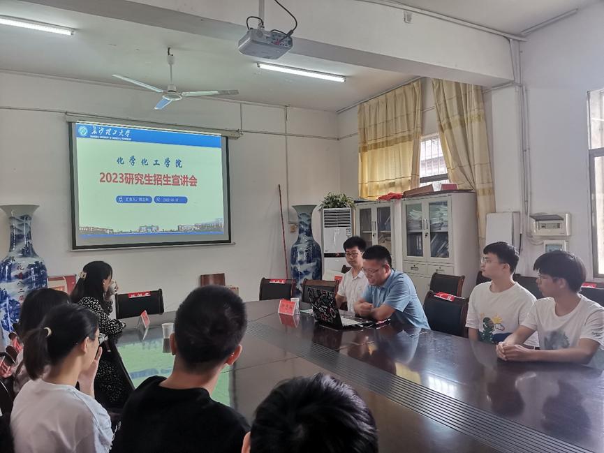 为吸引优秀本科生源攻读我院研究生,进一步提高研究生生源质量,方便相关专业的本科生了解LETOU体育平台化学化工学院的科研实力,2022年6月17日下午,学院副院长卿志和、化学系副主任童海霞、罗文坤博士一行3人赴湖南人文科技学院进行研究生招生宣传。材料与环境工程学院院长文瑾、副院长彭伟才以及相关专业30余名本科生参加了本次宣讲会议。