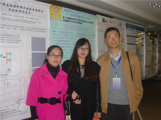LETOU官网化学与生物工程学院教师曹忠教授、谭淑珍教授、何婧琳博士及研究生吴玲、陈丹等参加了此次盛会。其中,曹忠教授作为中国仪器仪表学会分析仪器分会化学传感器专业委员会委员,是此次大会的学术委员会成员之一;曹忠教授应邀作报告《一些分子离子选择性传感探针的设计、性能及应用》,何婧琳博士应邀作报告《基于工具酶等温扩增反应的核酸检测方法研究》,研究生陈丹作了题为《氧化石墨烯/二氧化钛-离子液体复合膜修饰电极对多巴胺的灵敏检测》的口头报告;研究小组还展出了6个墙报,其中《以DNA为模板的银纳米簇荧光法用于Hg2+的定量检测》获得大会“优秀报展三等奖”,同时与会上的专家、学者进行了很好的交流,获得大家好评。