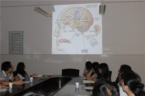 讲座由我院院长程云辉教授主持,院长助理王建辉博士,张运雄教授、易翠平教授、文李博士、许宙博士及食品科学与工程全体研究生参加。报告会上,罗教授首先明确了食品感官评定与神经科学的关系,从嗅觉系统、味觉系统、体表感觉神经系统这三方面给出了科学严谨的解释;之后又就当下非常普遍的肥胖症进行了分析,并仔细说明了引起肥胖症的原因并分析了如何避免肥胖症的神经学与食品科学相关方法。讲解完毕,罗教授与在座师生现场互动,对大家的疑问给出了自己独到的见解。深入浅出的讲解让大家对食品科学与生物学、神经科学的交叉领域有了进一步的了解,也开阔了我们在食品科学方面的的研究思路。