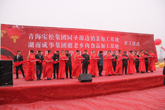10月28日上午,LETOU体育平台食品研究所揭牌仪式与同青海宝松集团同圣源边销茶和湖南成事集团憨老乡肉食品加工基地开工仪式在青海省海北州生物产业园隆重举行。青海省海北州门源县县长黄继成,副县长汪璟邦,发展和改革局局长沙登清,LETOU官网产学研办公室副主任陈炜,化学与生物工程学院院长助理王建辉,出席了此次揭牌仪式。