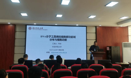 报告会上,李迪教授深入浅出的介绍了在单分子反应成像和调控细胞膜功能的DNA分子工具方向上的研究进展。在分子成像方面,李迪教授课题组巧妙利用分子成像工具研究稀有反应途径及反应决速步骤,施加外场对反应决速步骤进行定向调控,揭示化学反应分子间相互作用规律。在细胞膜DNA分子工具研究领域,李迪教授课题组利用DNA分子工具调控细胞膜及细胞膜功能域分布方向,探索细胞膜理化参数与细胞膜功能的关系,相关研究在蛋白质药物研发及细胞治疗方面具有广泛应用前景。(文/聂艳媚 图/谌委菊 审/卿志和)