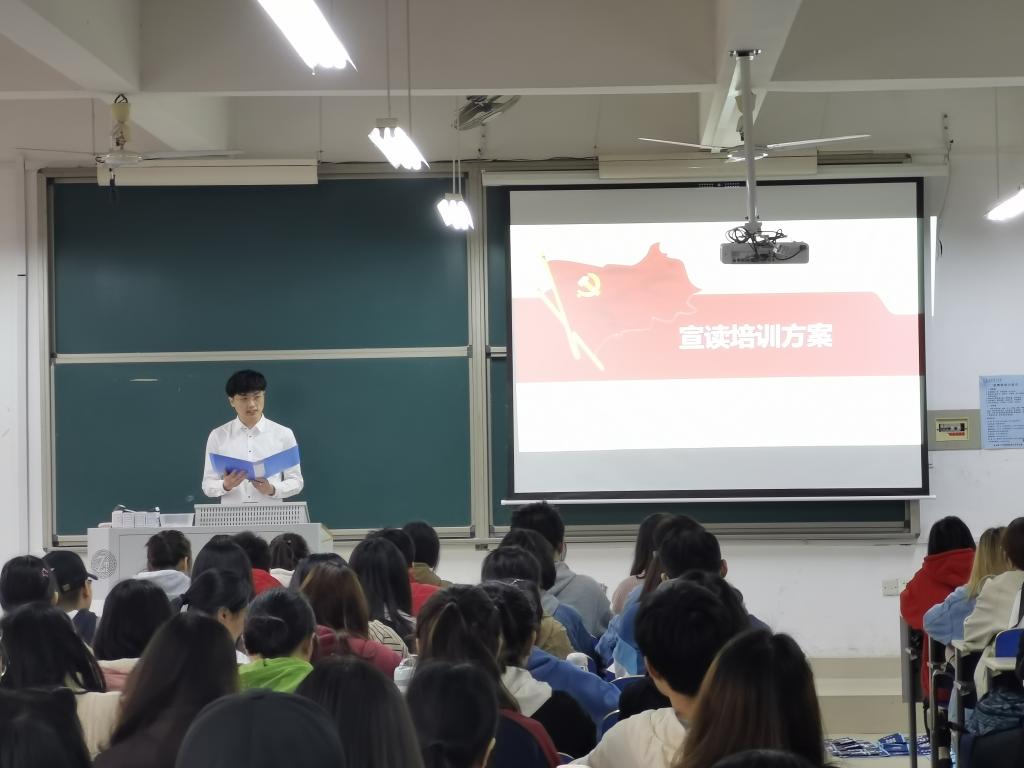 4月13日中午,化学学院分党校第37期入党积极分子培训班开班典礼暨第一次视频课于工科一号楼B203举行。本次会议由化学学院入党积极分子培训班副班主任崔英杰同志主持,化学学院党建辅导员刘文成老师、培训班全体积极分子参加。