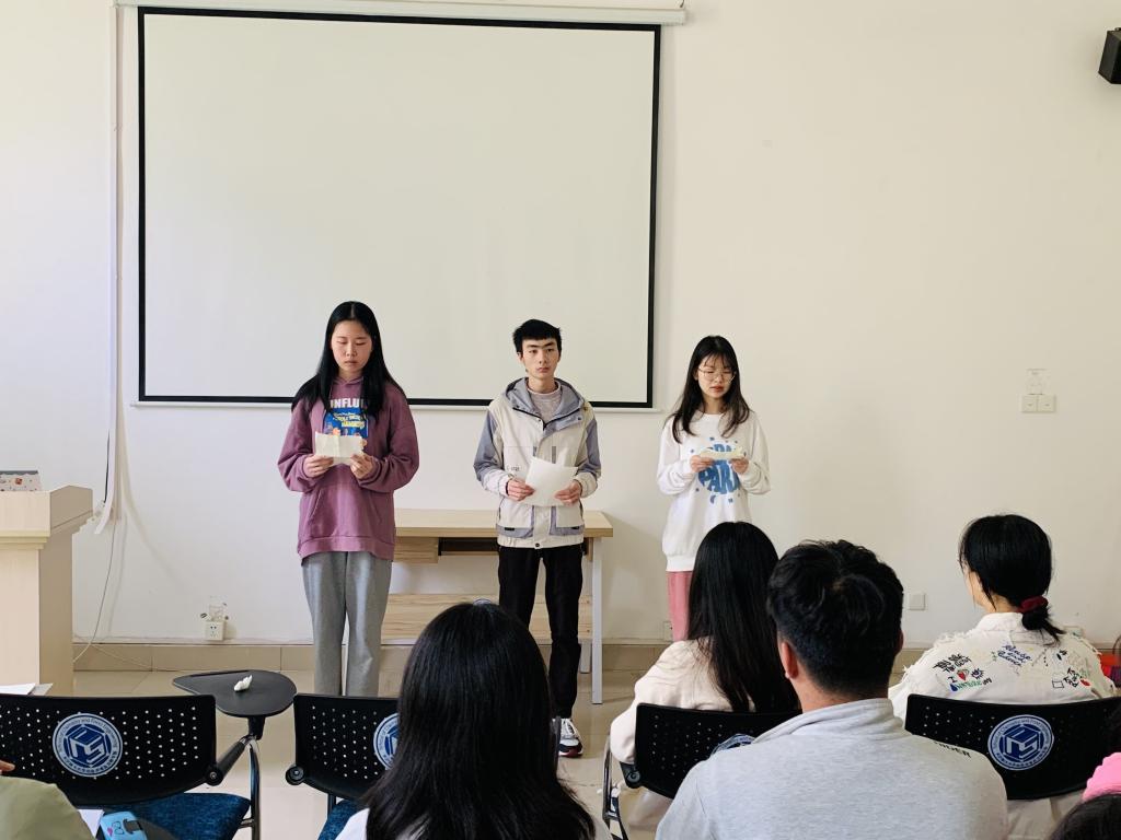 梅丹、陈蕾、刘雪晴分享了《七律•长征》。作于红军战士越过岷山后的这首诗,传达出了乐观积极的革命精神,使听众感受到红军战士们对理想信念的坚定不移和不懈追求。“更喜岷山千里雪,三军过后尽开颜”,当代青年学生更要牢记伟大长征精神,凝心聚力、砥砺前行,走好新时代的长征路。