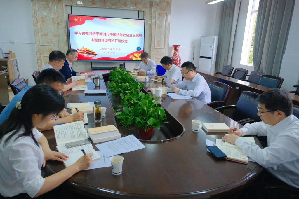5月9日下午,化学化工学院学习贯彻习近平新时代中国特色社会主义思想主题教育读书班开班仪式在工科三号楼B318会议室举行,学院党委书记宋刘斌主持会议并作动员讲话,学院全体党委委员参加会议。