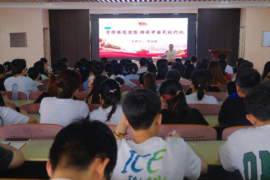 党委书记宋刘斌以《学深悟透思想 推进中国式现代化》为题,为学生党总支全体党员讲授了主题教育专题党课。他指出,习近平总书记在党的二十大报告中首次提出中国式现代化,在学习贯彻党的二十大精神研讨班开班式上发表重要讲话中对中国式现代化进行了强调,足见党中央和全国人民对中国式现代化的认可和自信。他强调了以人民为中心是新时代坚持和发展中国特色社会主义根本立场,对如何充分发挥全体人民的主人翁精神,凝聚起推进中国式现代化的磅礴力量谈了自己的理解。