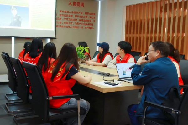 在“五老”事迹展陈区,青年党员通过红色档案研读、影像资料学习,系统了解老一辈党员扎根基层、服务社会的奋斗历程。面对鲜红党旗,全体党员重温入党誓词,齐声发出“请党放心,强国有我”的青春誓言。互动环节中,支部党员结合专业特色,围绕“如何将学科知识融入社会服务”展开热烈讨论。
