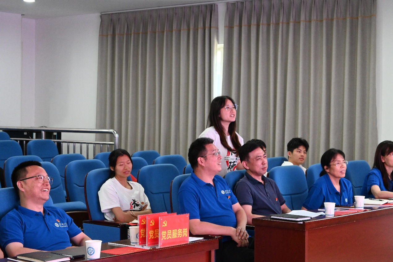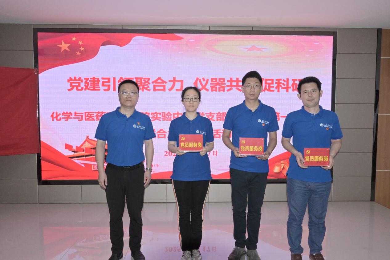 活动中,宋刘斌宣读了学院党委《关于成立分析测试党员技术服务小组的通知》,并向三位老师颁发了“党员服务岗”标牌。他指出,广大党员要切实将理论学习成果转化为实际行动,不断增强服务意识和政治责任感,在分析测试服务中积极践行初心使命,勇于担当、尽职尽责,不断提升分析测试中心的规范化管理水平和技术服务能力。随后,师生围绕“如何在测试服务中发挥先锋模范作用”展开了专题讨论。大家踊跃发言,就仪器预约、操作规范、数据分析以及如何进一步提升仪器使用效能等问题进行了深入交流。荣获“党员服务岗”称号的实验中心副主任邱雪英和实验员林本平结合各自分管工作作了专题发言。