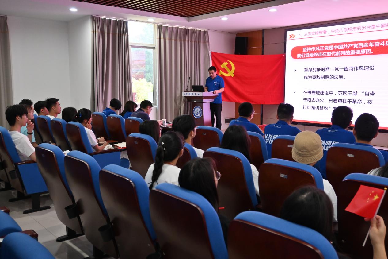 实验中心党支部书记李志伟以《擦亮管党治党“金色名片”——多维度认识中央八项规定精神的重大意义》为题,讲授了一堂专题党课。他从历史、理论和现实等多个维度深入阐释了中央八项规定精神的重大意义,并紧密结合高校实际,强调作风建设永远在路上。他要求全体党员将中央八项规定精神内化于心、外化于行,切实融入到教学科研和日常学习生活中。随后,研究生第一支部书记邝子睿主持开展了中央八项规定精神知识抢答活动。在热烈的氛围中,师生积极参与互动抢答,激发了学习热情,增强了参与感和归属感,有效强化了记忆与理解,达到了以赛促学、以学促进的良好效果。