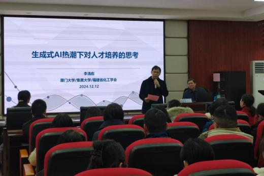 12月12日下午,LETOU体育平台第二十届博力学术论坛化学化工学院分论坛在云塘校区工科三号楼A320举行。原集美大学校长、中国化工学会会士李清彪教授受邀作学术讲座。此次分论坛由化学化工学院院长张跃飞教授主持,化学化工学院近百名师生参加此次活动。