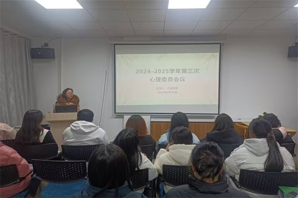 2月26日20:00,化学与医药工程学院于工三B448召开2024-2025学年第三次心理委员会议。会议由心理辅导员江洁主持,全院心理委员按时参与,共计27人。