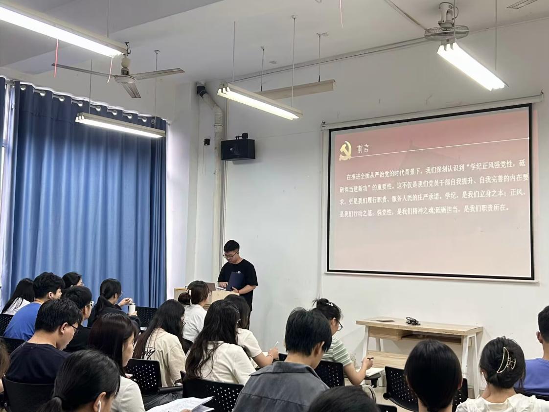 轻化本科生党支部通过参演红色剧本杀的方式,引导党员们深刻体会抗战时期中国人民的家国情怀和不屈不挠的精神。这一活动不仅让党员们在重温历史的同时,更加坚定了爱国主义信念,也激发了他们为国家繁荣和民族复兴贡献力量的决心。应化本科生党支部邀请党委书记上“微党课”。研究生第一党支部和化工本科生党支部则通过观看教育视频,深化了对党性、党风重要性的理解,提升了政治素养。湿地使者党支部通过主题宣讲及河流环境清理活动,深刻理解保护环境的重要性,弘扬了“绿水青山就是金山银山”的环境理念。研究生第二党支部举办毕业生欢送会,为毕业生送上美好的祝福,让他们再次感受到支部温暖。