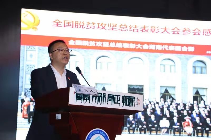 陈羽阳同学说,认真听了这堂课,自己深切领会了在脱贫攻坚斗争中,数百万扶贫干部倾力奉献、苦干实干,同贫困群众想在一起、过在一起、干在一起,的伟大精神,作为新时代青年,更应苦练本领,志存高远,为全面建设社会主义现代化国家、实现第二个百年奋斗目标而披坚执锐、勇立新功。