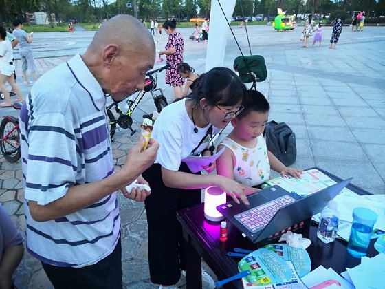 活动伊始,精心准备的开场舞吸引了广场上众多休闲的居民。实践队员带领他们一一参与展会的活动区域。知识普及宣传区内居民认真聆听工作人员的讲解,也有青年人对当地的环境状况各抒己见;“一站到底”区内,可以看到有很多当地居民垃圾分类知识熟记于心,轻松拿到纪念品;并且经常言传身教,让自己家的孩子从小养成垃圾分类的习惯以及培养垃圾分类的意识;环保酵素区内,真正诠释了“兴趣是最好的老师”这句话,大家怀着好奇心想一探究竟。团队成员对环保酵素的制作方法及益处进行讲解,并且赠送一些提前准备好的环保酵素给当地居民。