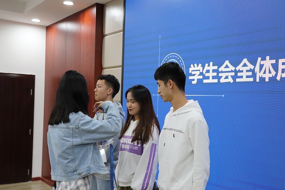 在团委、学生会全体成员的授牌仪式完毕后,学生干部代表高波发言,并对学生会新晋干事提出七项建议:常怀敬畏;遵守规则,善于变通;日清日高,守时达标;坚持学习,不断进步;及时总结反思,自我批评;服务师生,传承创新;加强部门之间的沟通交流。