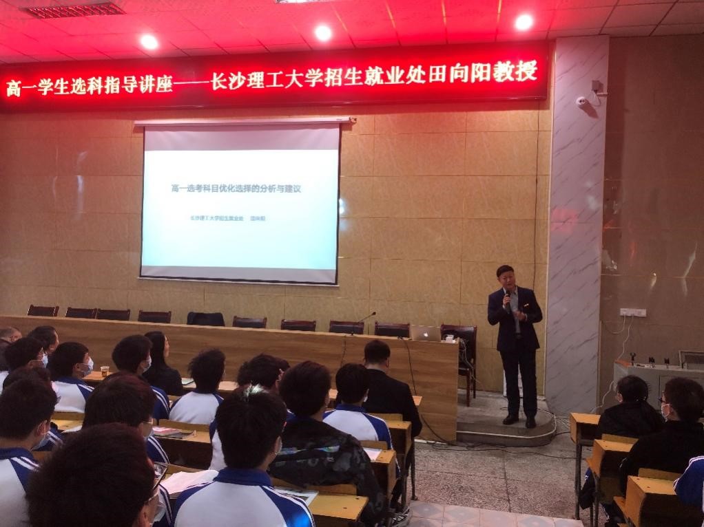 曾祥君一行第一站来到洞口县第三中学。这里是曾祥君的母校,重访故地,他向母校领导表达了内心中多年来的思念与感激,并为高一年级的学弟学妹们做了一场以“感恩 梦想 拼搏”为主题的励志讲座,通过回顾自己的求学生涯历程,勉励同学们“找一个目标跟你的名字挂钩,梦想是可以改变的,但每个人要有内心中最初的梦想。”在解答学生们如何选择专业的疑惑时,曾祥君通过自己的真实经历,结合当今国家发展需求和不同专业的特点,给同学们提出建议,得到同学们热烈地掌声回应。学校招就处副处长田向阳为洞口县第三中学师生们分享了《高一选科的优化选择分析和策略》主题讲座,并和同学生互动交流,现场气氛极为热烈。