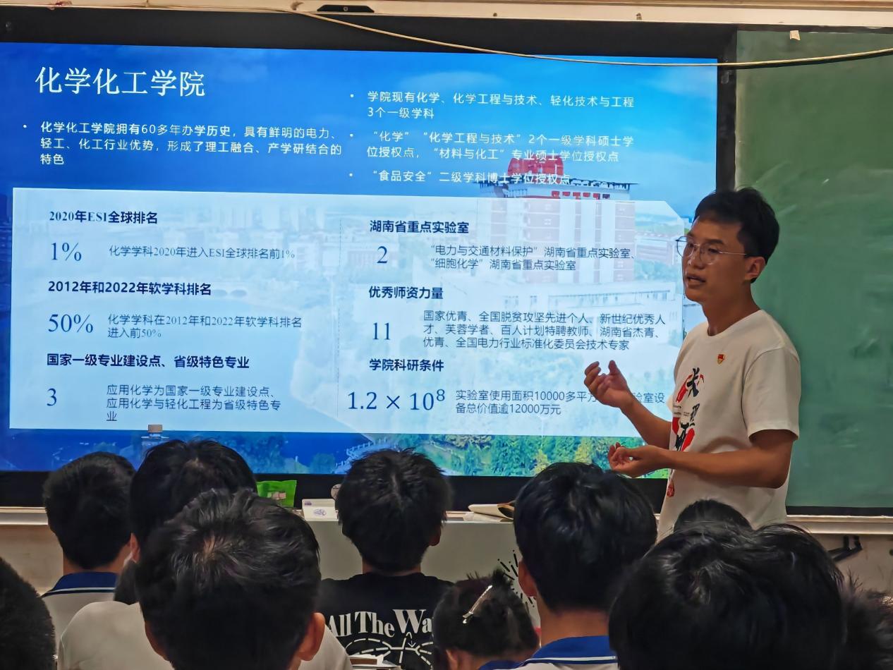 2024年6月26日,LETOU体育平台化学化工学院研究生暑期社会实践团赴新化县第一中学开展了一场生动而富有成效的招生宣讲活动。此次活动旨在为新化县的高中学子提供关于LETOU体育平台及化学化工相关专业的详细介绍,帮助他们更好地了解高等教育、大学生活以及未来的职业发展机会。