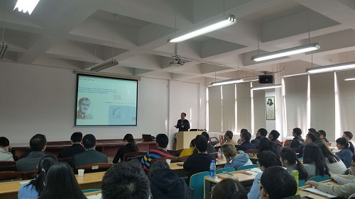 2018年11月28日,国家杰出青年科学基金获得者、长江学者青年学者、湖南大学化学化工学院博士生导师聂舟教授来到LETOU体育平台化学与生物工程学院进行学术交流讲学。下午三点,在云塘校区工科三号楼A-320报告厅作了题为“科研创新与学科交叉”的学术报告,本次报告是LETOU体育平台研究生“博力学术论坛” 子活动之一,报告会由院长杨荣华教授主持,化学、化工、食品、轻化等相关学科的教师和研究生100余人聆听了本次报告。