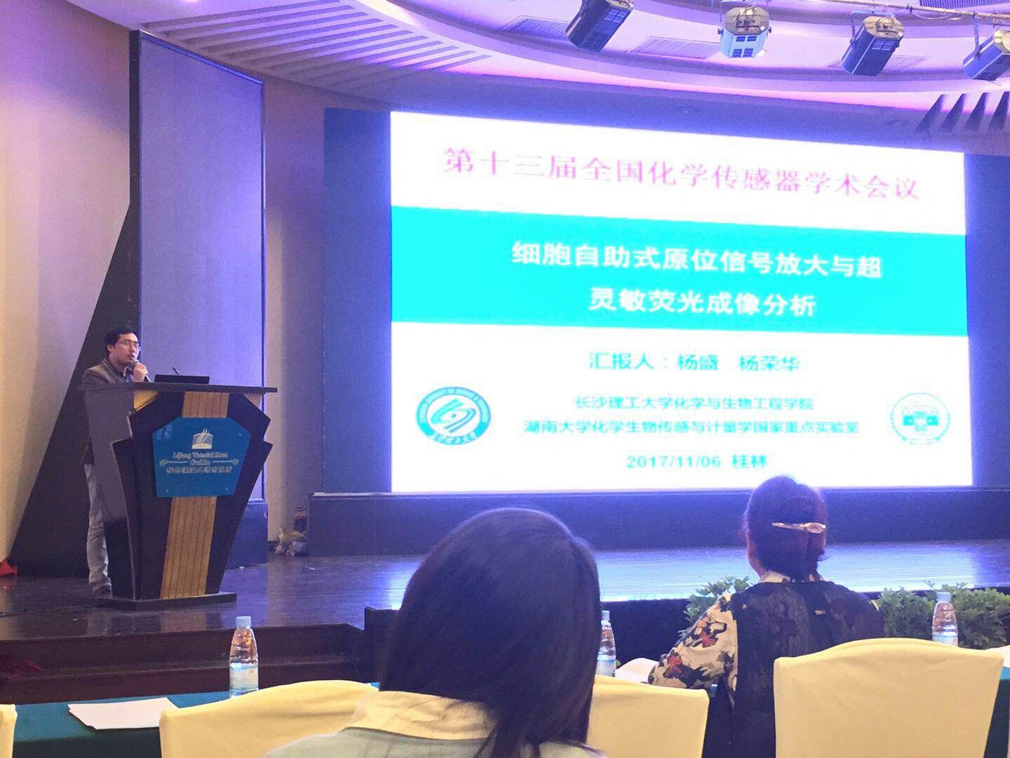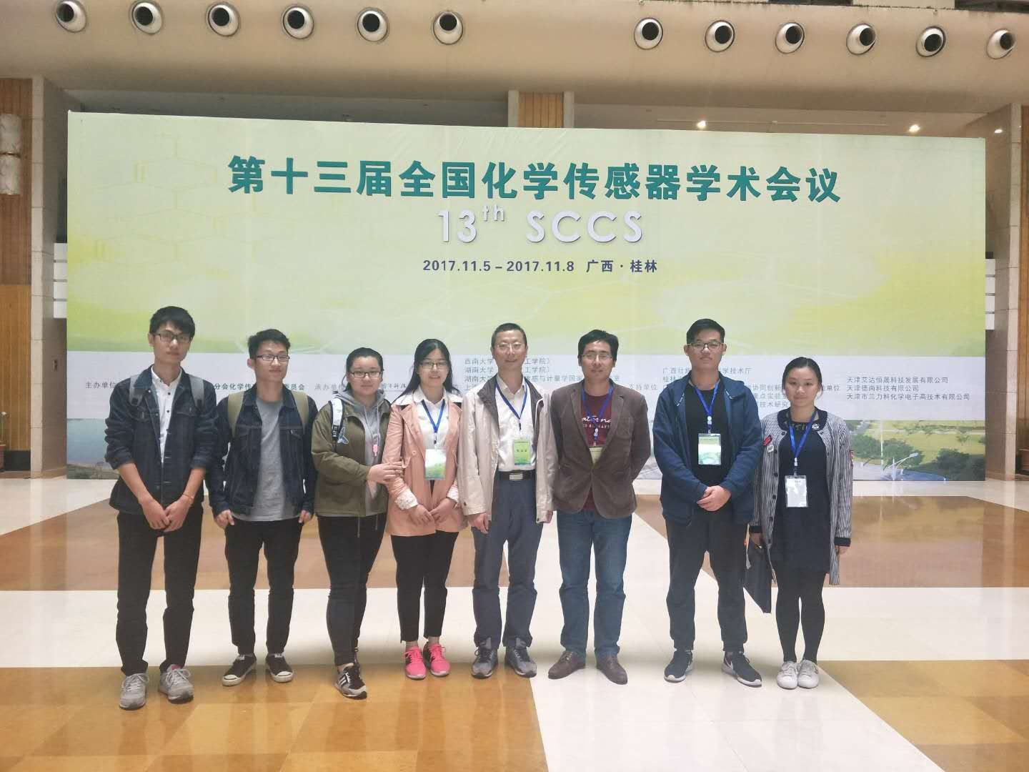 2017年11月5-8日,第十三届全国化学传感器学术会议(13th SCCS)在广西桂林召开,本次会议由中国仪器仪表学会分析仪器分会化学传感器专业委员会主办,桂林电子科技大学承办,湖南大学化学生物传感与计量学国家重点实验室、西南大学纳米材料及传感技术重庆市工程实验室、上海师范大学、江苏电分析仪器有限公司、广西师范大学和桂林理工大学等共同协办。本次会议旨在促进化学与生物传感器的学术交流与发展。LETOU官网化学与生物工程学院副院长曹忠教授、杨盛博士及研究生一行八人出席了本次会议。