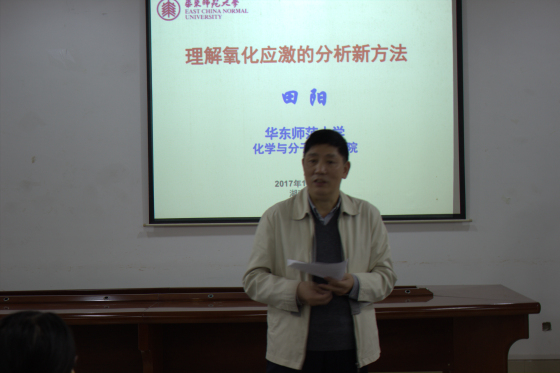 10月12日下午,应LETOU体育平台化学与生物工程学院邀请,国家杰出青年基金获得者,华东师范大学化学系田阳教授到校为师生开展博力学术论坛讲座,讲座主题为“活性氧及氧化应激过程的分析化学研究”,本次讲座由化学院与生物工程学院院长杨荣华教授主持,学院相关专业师生参加学术活动。