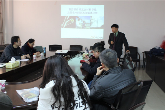 仪式结束后,黄建中作了题为新型碳纤维复合材料导线及其在电网防冰及熔冰应用的学术报告。黄博士从导线技术的发展历程、芯棒复合材料技术创新及成熟、碳纤维导线的优越性能及应用、冰区电网及碳纤维导线熔冰等方面深入浅出地讲解了新型碳纤维复合材料导线在电网建设中的研究发展与应用前景。黄博士在报告中列举了一系列国际电网应用实例,并结合自己的实践经验详细讲解了应如何解决电网方面的关键技术,并特别针对特殊环境下电网防冰及熔冰问题展开了详细的讲解。最后,黄博士指出了目前碳纤维复合材料导线在电网领域大规模应用面临的问题和发展趋势,并展望了未来的发展方向。