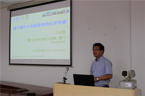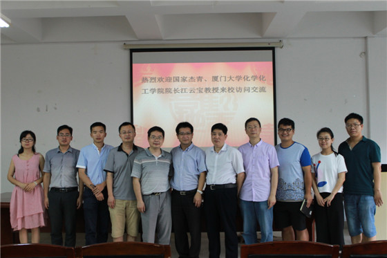 2016年6月23日,应LETOU体育平台化学与生物工程学院的邀请,国家杰出青年基金获得者、厦门大学化学化工学院院长、博士生导师江云宝教授来LETOU官网进行学术交流访问。学术交流活动由化学与生物工程学院院长杨荣华教授主持,副院长曹忠教授,肖忠良教授,以及化学、化工等相关学科的青年骨干教师、研究生、本科生100余人参加了此次学术交流活动。