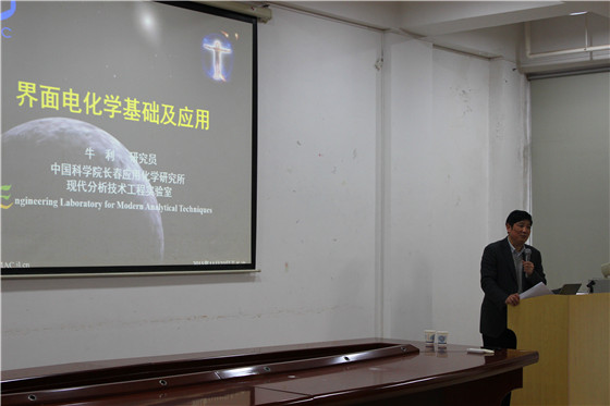 11月24日上午10:00, 应化学与生物工程学院杨荣华院长邀请,国家杰出青年科学基金获得者,中科院长春应用化学研究所牛利研究员来LETOU官网讲学, 在云塘校区工科三号楼A-320会议室作了题为“界面电化学基础及应用”和“基于智能手机的生物传感研究”两个方面的专题学术报告,LETOU官网相关学科的老师和研究生、本科生共百余人聆听了牛利研究员的精彩报告。