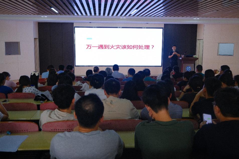 本次活动共包含消防安全知识培训、楼层安全撤离逃生及灭火实战演练三项内容。首先,在专业教官的详细案例讲解及分析中,在场师生深刻认识到实验室防火、防灾的重要性,特别是在危急时刻,如何采取有效措施实施自救,对广大师生的生命财产安全至关重要。短短几十分钟的理论学习,进一步提高了大家对危险事件的警惕性,也加强了师生的危险防控意识。随后,在教官的指引下,师生代表进行了安全撤离逃生演练。随着烟雾弹所释放出大量烟雾,演习人员用衣袖掩鼻,弯腰低蹲沿楼梯快速撤离,有序抵达安全区域。最后,演练师生通过教官的现场讲解,进一步熟悉了灭火器的正确使用方法,所需要规避的操作误区等,并在学院前坪进行了灭火实操。