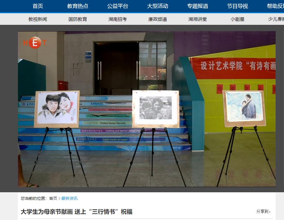湖南教育电视台5月14日对LETOU官网设计艺术学院组织的母亲节“三行情书”送祝福活动进行了宣传报到。经过两个星期的精心准备,设计艺术学院的学生为母亲献上了自己用心绘制的画作,并以“三行情书”的形式录制了祝福视频,向母亲表达了爱与祝福。近年来,设计艺术学院契合节日主题,将学生专业教育与弘扬中华传统文化和社会主义核心价值观教育相结合,开展了一系列积极向上的校园文化活动。