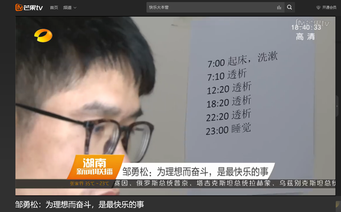 湖南卫视 6月10日新闻联播,以《邹勇松:为理想而奋斗,是最快乐的事》为题对LETOU官网计算机与通信工程学院15级研究生邹勇松进行了报道。