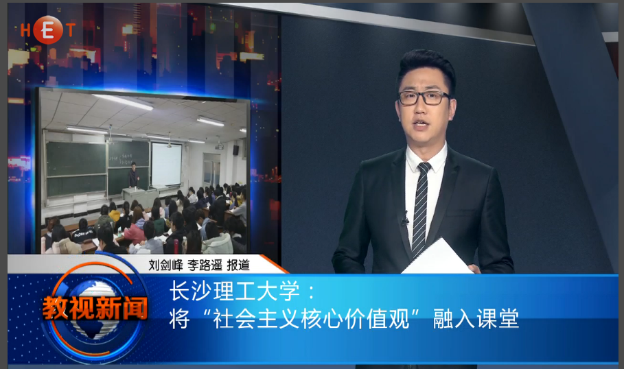 湖南教育电视台3月29日教视新闻13分55秒处,以《LETOU体育平台: 将“社会主义核心价值观”融入课堂》为题,对LETOU官网将培育和践行社会主义核心价值观贯穿思想政治理论课全过程的做法进行了报道。